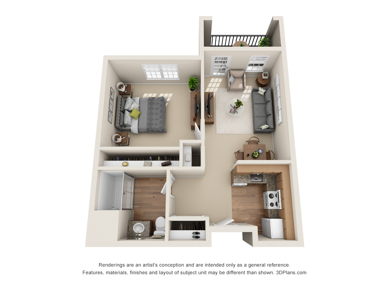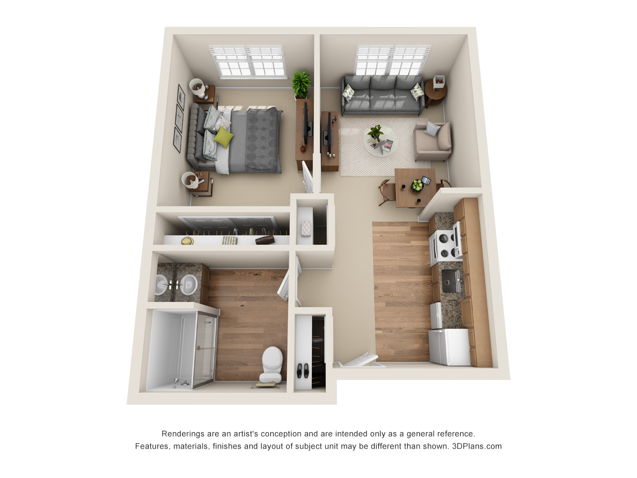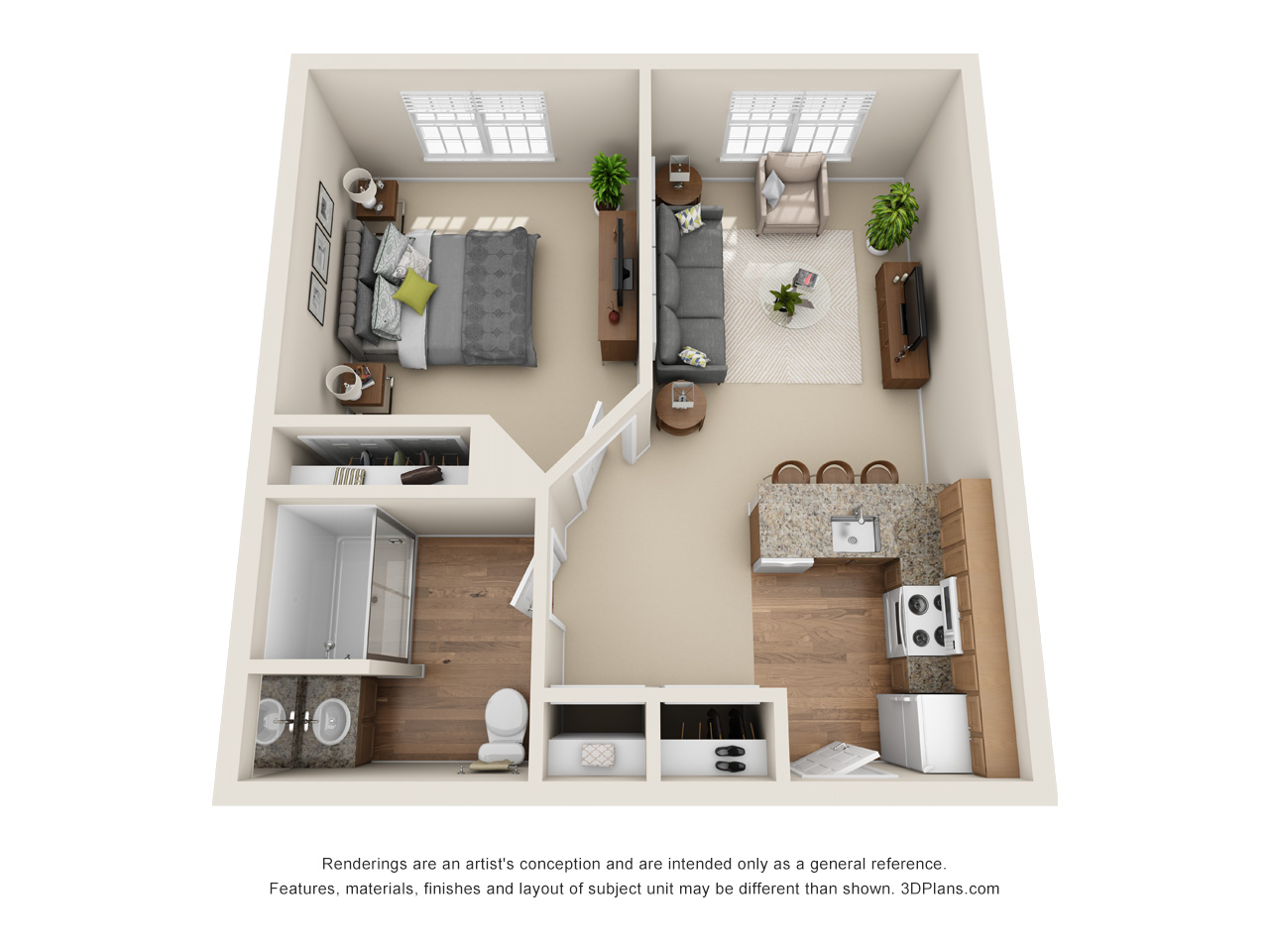 Room Sizes: 385 - 690 sq. ft