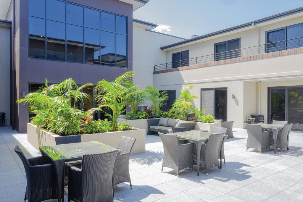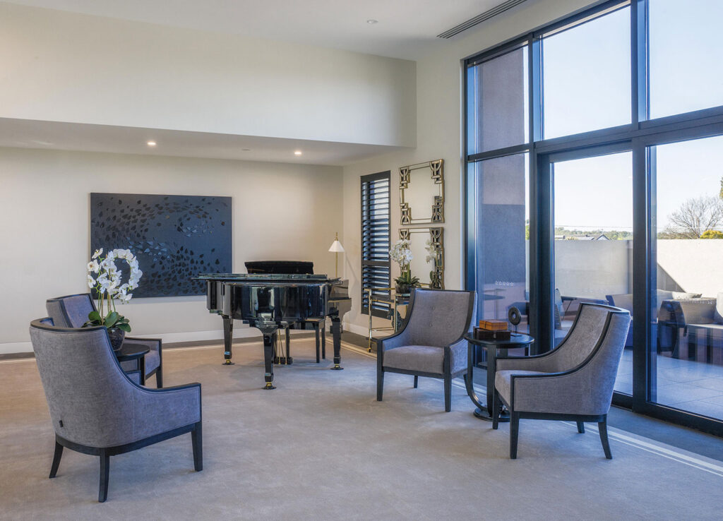 The environment exudes elegance and sophistication, with well-lit and airy courtyards that provide a relaxed and comfortable setting. The home is designed to cater to residents’ needs, with amenities that pamper and delight, including a salon, boutique cafe, movie theater, and a bus for outdoor excursions. With an air of sophistication that permeates every aspect of the home, Arcare strives to create an environment that feels like a safe space – one where residents can feel safe and valued.