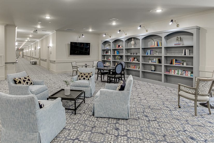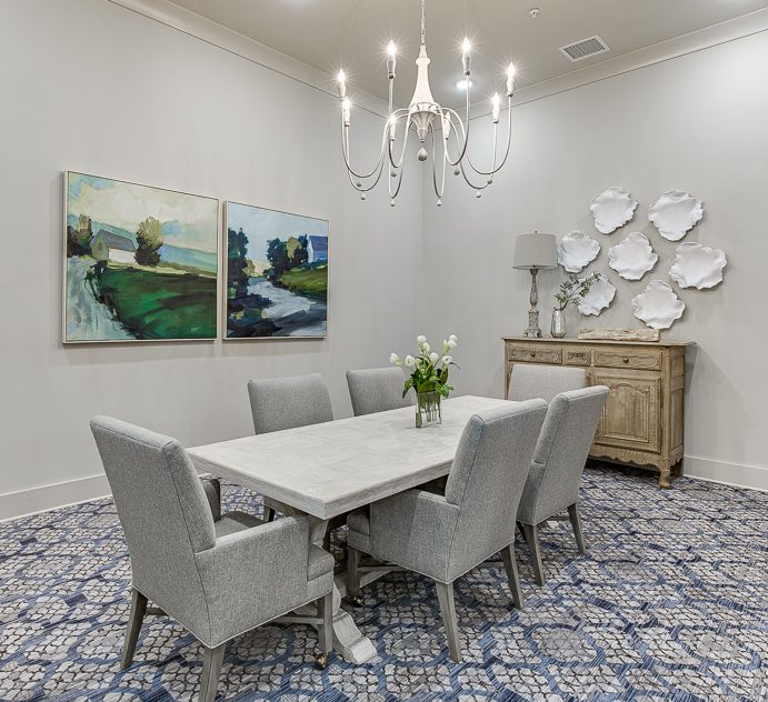 Management On Call & Available 24/7, Creative Art Studio, Theatre, Exercise and Therapy Room, Self Service Bistro & Gourmet Coffee Bar, Nutritious Chef-Prepared Meals, Putting Green, Barber & Beauty Salon Services, Personal Laundry and Linen Services, Housekeeping & Maintenance, Emergency Call System, Medication Management, Library and Computer Area, Community Garden, Walking Paths, Private and Shared Suite Options, Physician and Nursing Oversight, Onsite & Offsite Events, Wellness Programs, Transportation, Complimentary Cable TV and WiFi, Grand Piano, Private Dining Room, Fireside Dining, Full calendar of daily events.