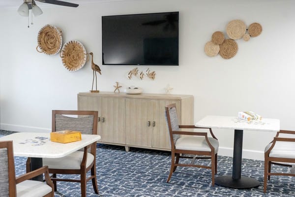 Salon services, happy hour, and plenty of recreational programs allow residents to pamper themselves and connect with friends. A library, beautiful courtyards, and pet-friendly spaces also facilitate interactions and relaxation for residents. The community is also conveniently located near Wa-Kee Hatchee Park, a bank, restaurants, and other shops, ensuring accessibility. With its top-notch services and state-of-the-art amenities, this assisted living and memory care community is one of the best options for senior living in Florida.