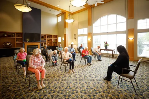 From invigorating exercise classes to enjoyable gardening trips, there’s something for everyone to stay active and inspired. The community encourages freedom of choice and provides unwavering support, fostering a sense of camaraderie and connection among its residents. The home features a well-stocked library, where residents can lose themselves in the pages of captivating books. For those seeking therapeutic solace, there’s a dedicated therapy pool that offers relaxation and rejuvenation. The onsite beauty salon or barbershop is perfect for pampering, and the elegant dining rooms provide a delightful setting for enjoying delicious meals prepared with care.