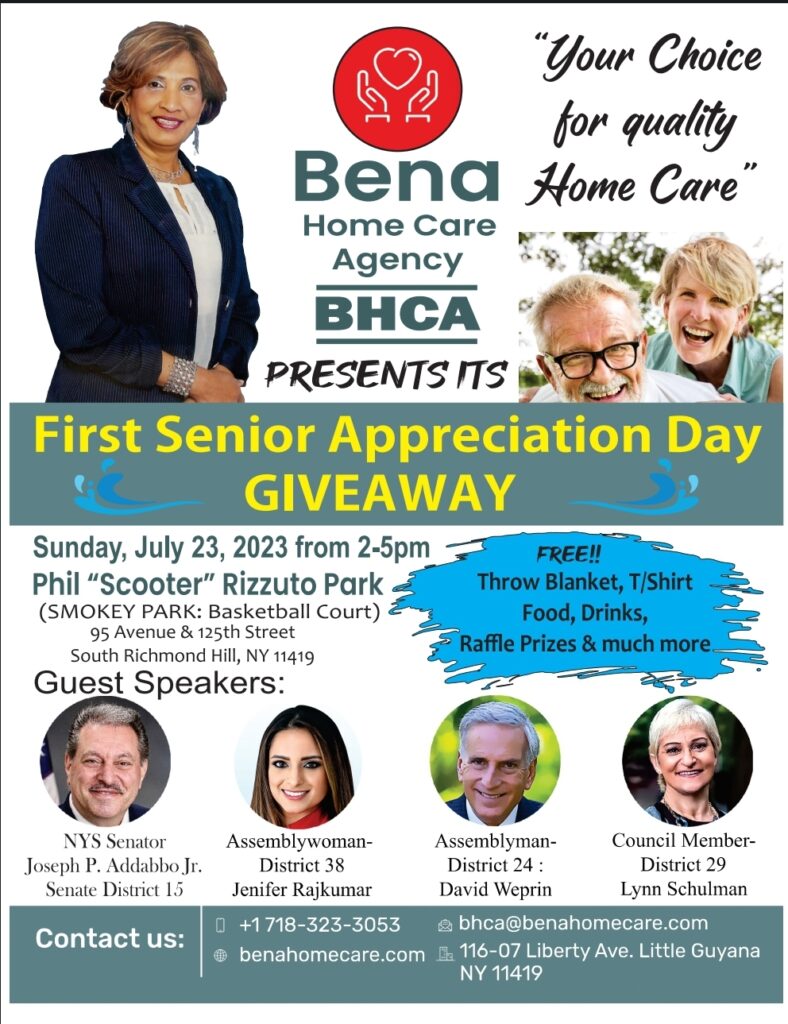 Bena Home Care is a dependable home care provider in Richmond Hill, NY, offering home health aides, visiting home nurses, and medical conditions assistance. With a respectful and highly trained team attending to their needs, older adults receive the highest quality of care. The agency also helps with daily living activities and housekeeping, ensuring older adults enjoy a worry-free lifestyle.