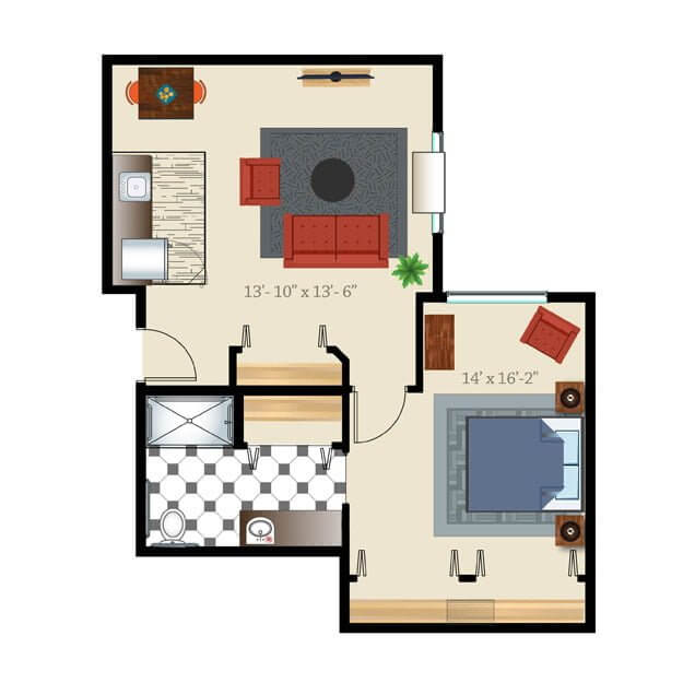 A thoughtfully curated calendar of engaging activities and enriching programs is conducted, encouraging residents to live actively and maintain social connections. Residents enjoy mealtimes on their own terms with delectable and healthy meals served daily and a full kitchen in each unit. The community’s serene and welcoming environment creates the ideal setting for residents, even those with cognitive conditions, to thrive in retirement.
