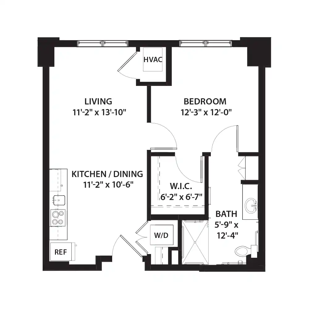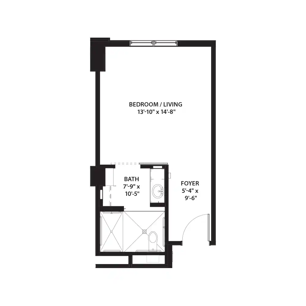1 Bed 1 Bath Floor Plan