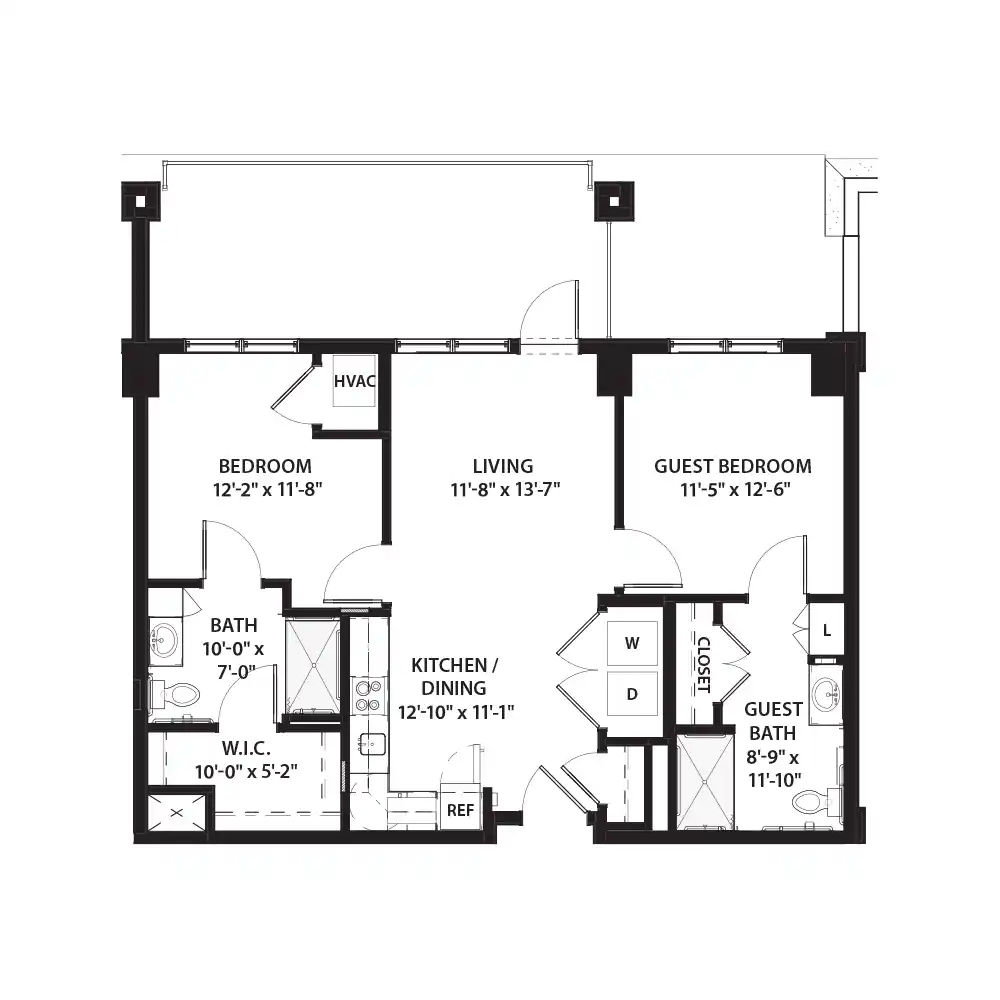 2 Bed 2 Bath Floor Plan