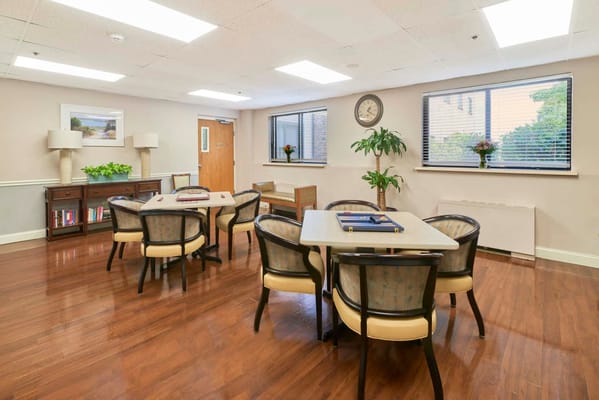 Stretching exercises, social events, and recreational activities encourage residents to stay active and make friends. A game room, a courtyard, and rehabilitation rooms are among the top-notch amenities available for residents’ relaxation and wellness. Residents also have quick access to their necessities and leisure, as it is conveniently located near banks, restaurants, the Northshore Mall, and public transportation in Peabody. Providing high-quality services for older adults’ welfare, this nursing home is one of the finest options for senior living in Massachusetts.