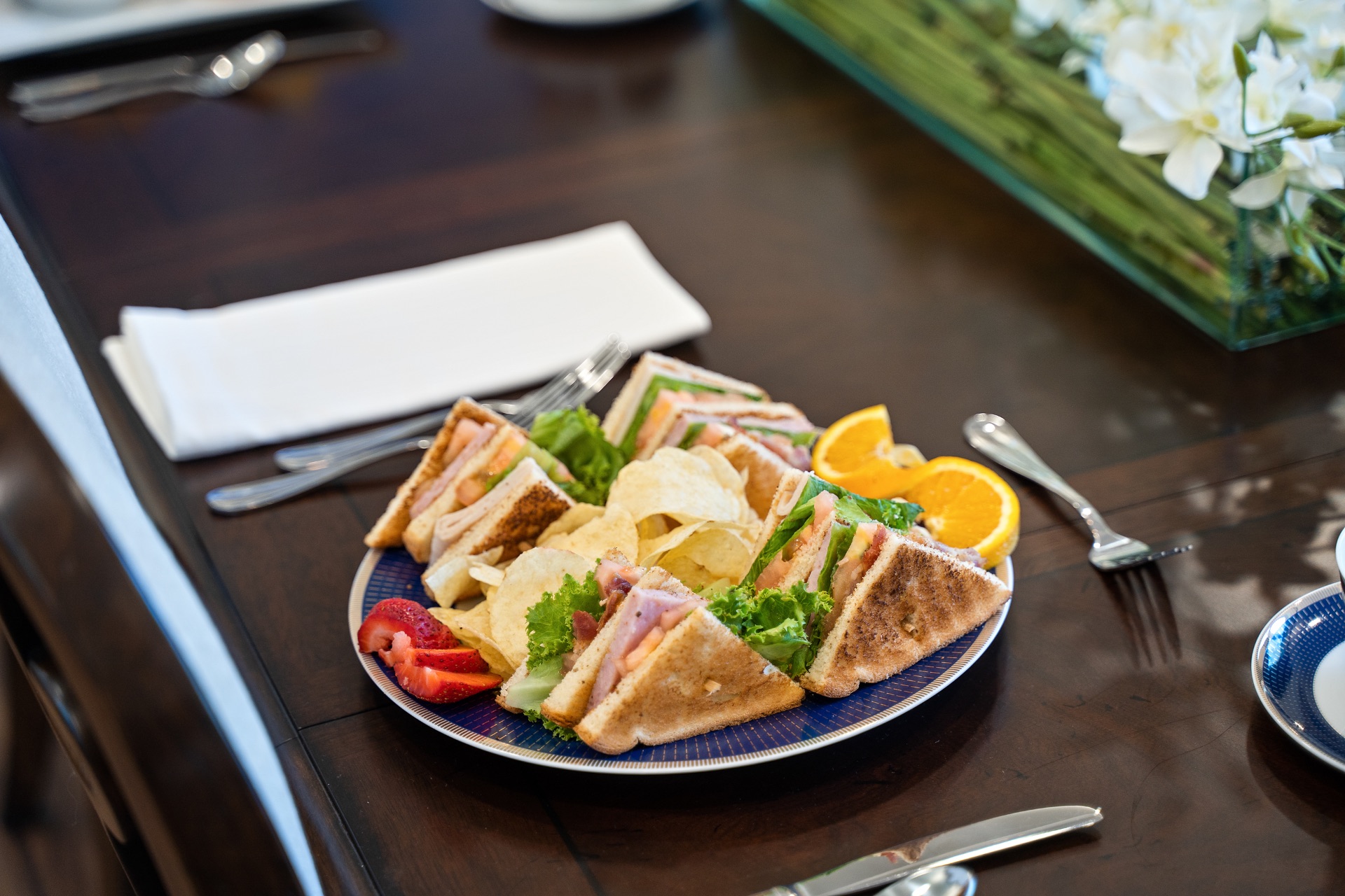 Three nutritious meals prepared daily by our Executive Chef; additional food items available throughout the day.