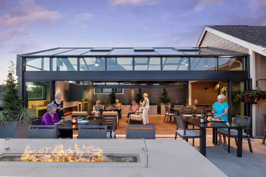 A larger shared setting that may offer more common spaces and organized community services.