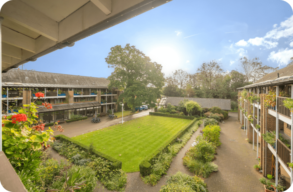 Relax in tranquil surroundings at Emmbrook Court, a welcoming senior living community in a quiet residential area of Reading, Berkshire, offering a safe environment for seniors who wish to retain their independence within an active social community. The community provides a variety of well-built one-bedroom and two-bedroom apartments with access to a 24 hour on-site team that offers excellent care and assistance. Residents can enjoy engaging programs, local excursions, and the peaceful surroundings filled with majestic trees and beautifully landscaped grounds.