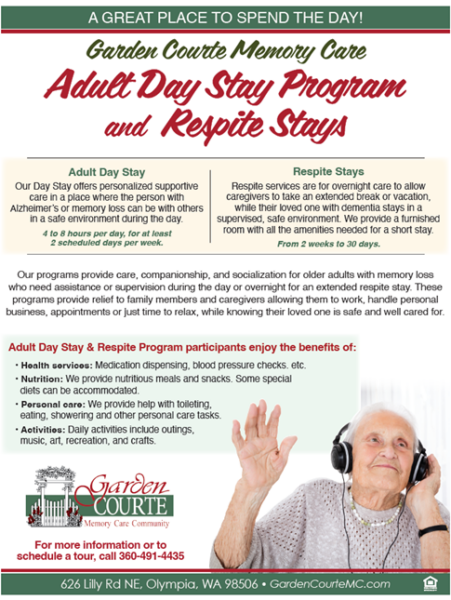 Situated in Olympia, Washington State, Garden Courte Memory Care Community is a dedicated assisted living community specializing in the compassionate care of residents with Alzheimer’s disease. Here, residents find respect and the dignity they deserve within a nurturing and supportive environment.
