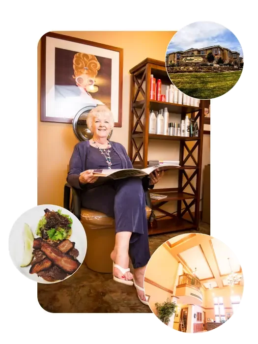 Secure neighborhoods provide a safe space for seniors to enjoy the outdoors, while inviting common areas foster new friendships and connections. The community boasts a heated interior courtyard, outdoor garden beds, and a greenhouse, offering a serene ambiance. Sports enthusiasts can indulge in activities on the basketball court and putting green. Additionally, there’s a well-stocked library, a chapel for spiritual enrichment, a salon for grooming needs, and a state-of-the-art fitness center to promote a healthy lifestyle. Gardens on Quail even features a unique 1950s themed room, adding a touch of nostalgia and charm to the community’s vibrant atmosphere.