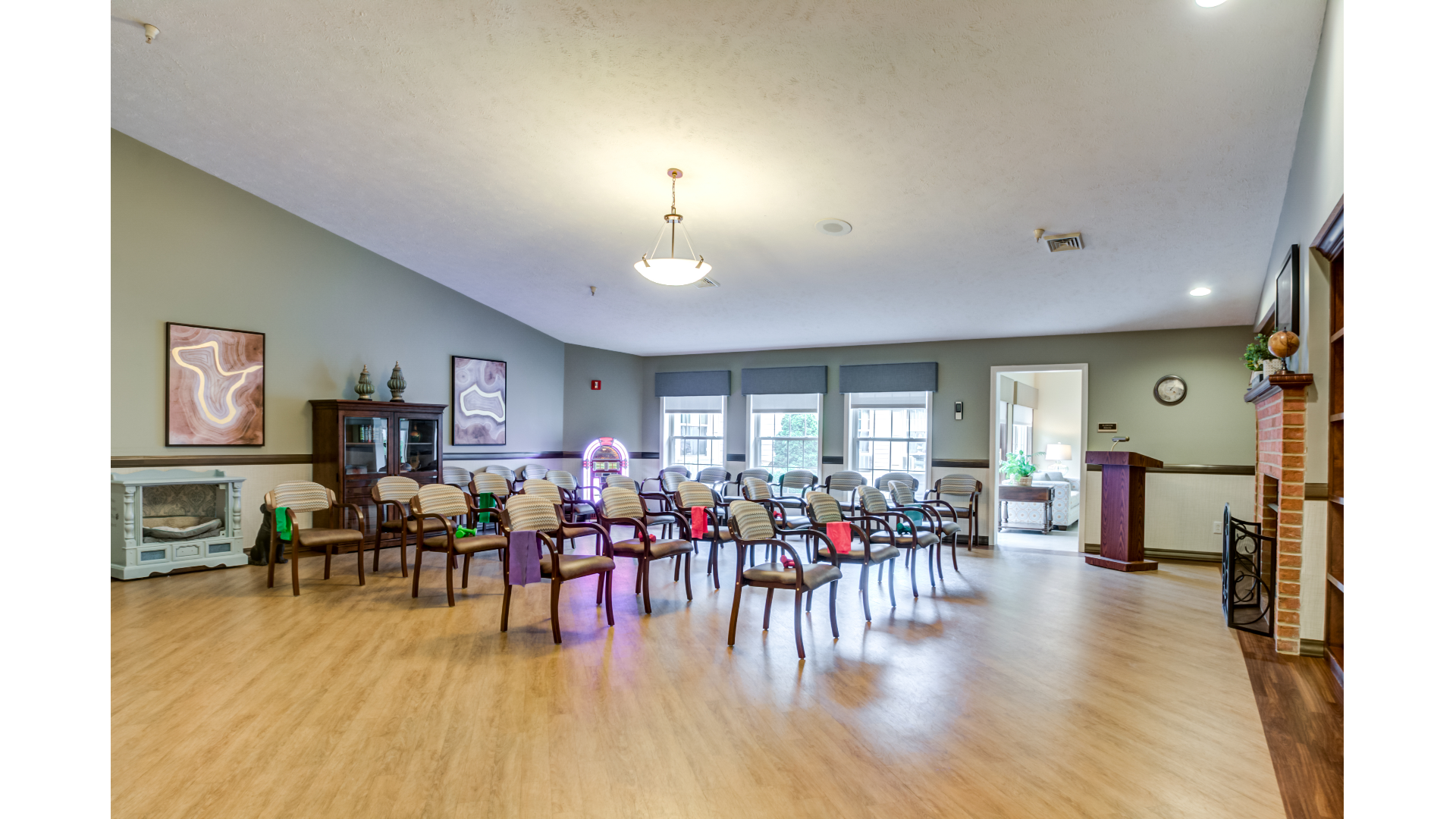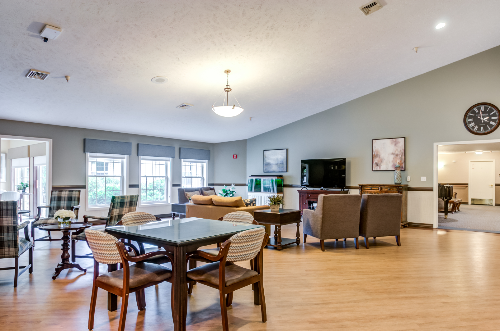 The home introduces a lifestyle that encompasses pet-friendly surroundings, a welcoming beauty salon, an enriching library, and a charming bistro. Every detail is curated to create an elegant ambiance that soothes the senses. With its soothing palette and focus on comfort, Glen Mills Senior Living stands as a testament to exceptional senior care.