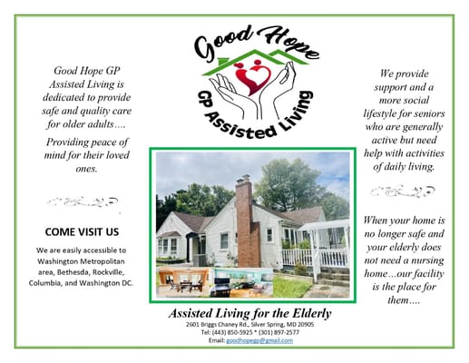 Goodhope Gp Assisted Living is a home healthcare provider in Silver Spring Maryland, offering in-home services and assistance with daily living activities. Committed to older adults’ comfort and welfare, the agency strives to maintain accessibility and convenience. With medication administration, transportaion, and healthcare coordination, older adults experience a maintenance-free lifestyle. The agency also strives to provide the best possible care for older adults’ indepdence through individualized care plans.