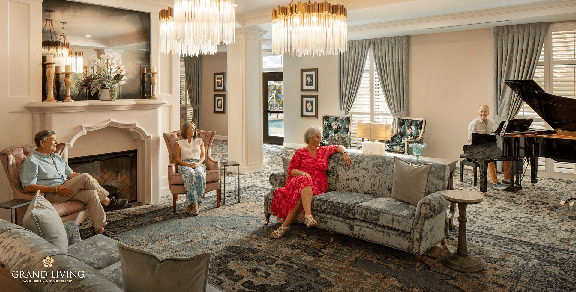 The residential lifestyle at Grand Living is built on luxury, comfort, and flexibility– which are all vital in cultivating a purposeful and holistic experience for each individual. Also offering assisted and memory care living, its premier accommodations include recreational activities, calendar-filled enriching programs, healthy and delicious meal plans, a bistro, a grand dining room, a private dining room, a pet park, a fire pit, and a billiards room.
