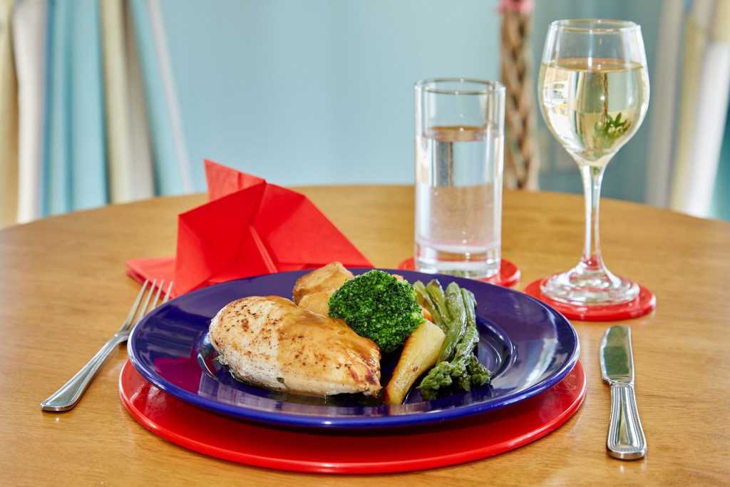 The menu concentrates on British food, with world foods included to reflect differing cuisines. Chefs are trained to tailor meals to meet dietary requirements, including gluten-free meals.