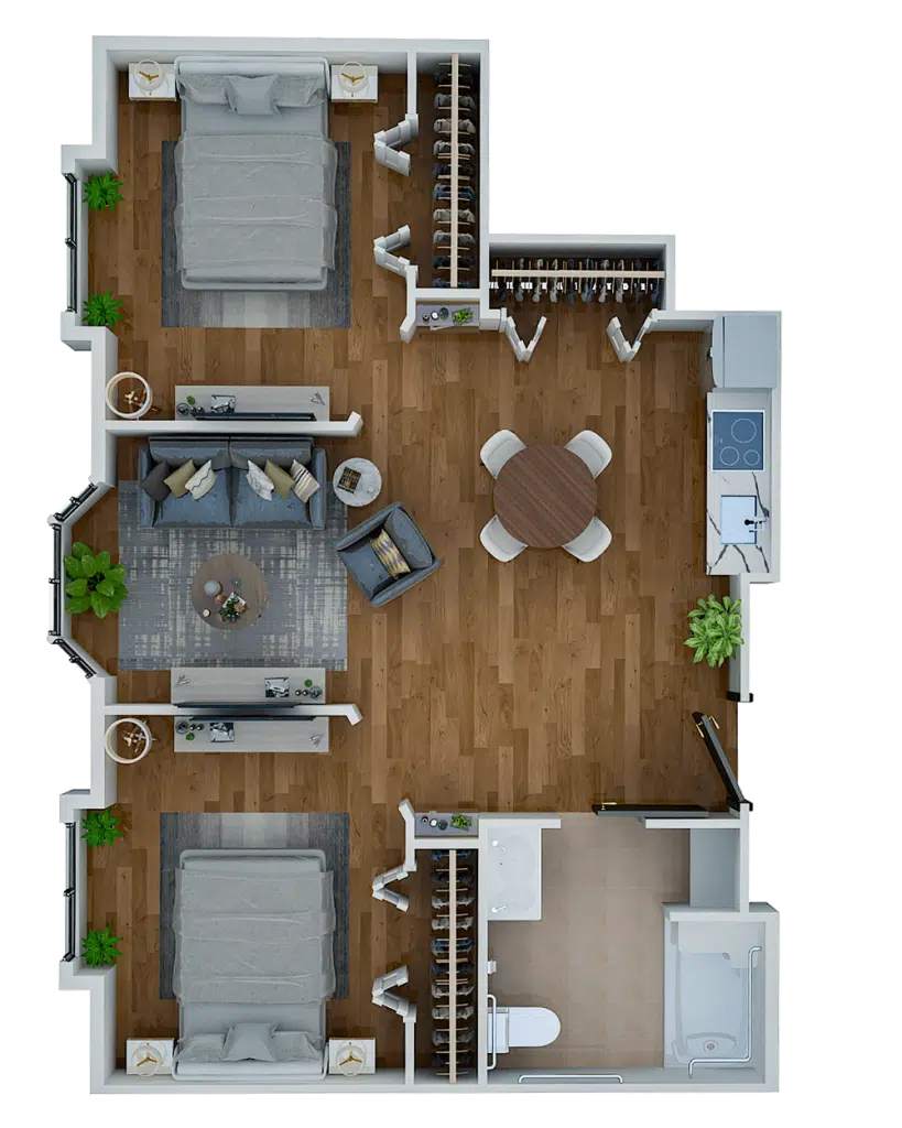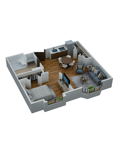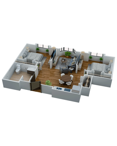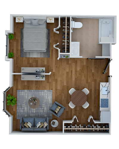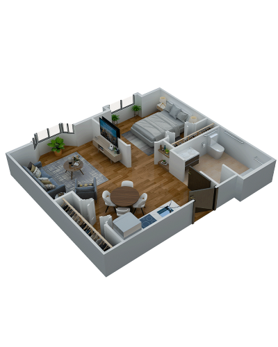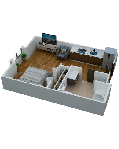 Room Sizes: 311 / 363 / 536 / 677 sq. ft
