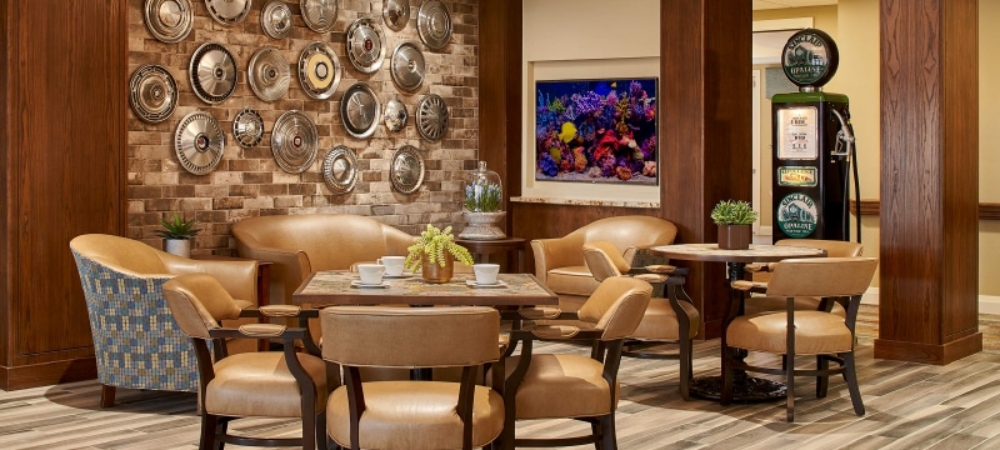Residents enjoy a worry-free lifestyle with a dedicated team that provides weekly housekeeping and laundry services, as well as scheduled transportation to nearby points of interest, shops and medical appointments. Residents stay healthy and fit with fully-equipped exercise and therapy spaces, complemented with three nutritious chef-designed meals per day. The community also offers an array of delightful amenities, including a theater, massage room, salon, game room, and outdoor areas like gazebos, putting green, walking paths and raised gardening beds.