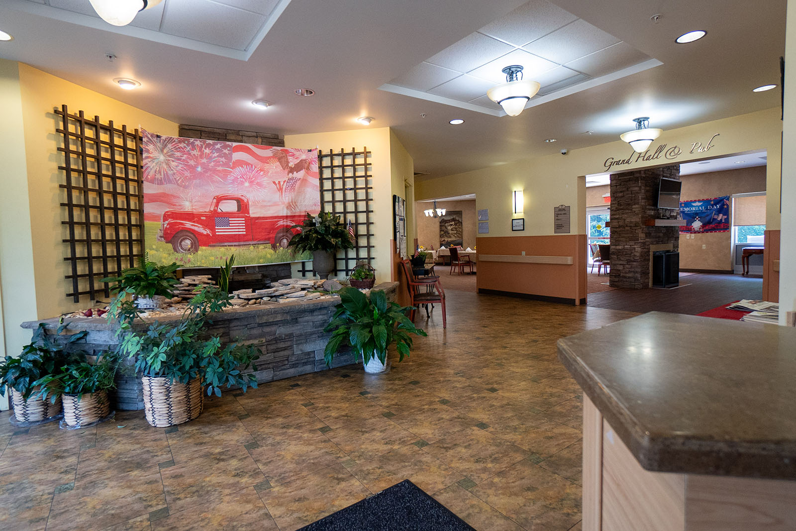 Weekly housekeeping, laundry and linen services are provided to free residents from mundane tasks so they can focus on enjoying the community activities and features. The community offers a salon, movie theater, and a game room for residents to enjoy, complemented with restaurant style dining featuring three nutritious meals daily. Here, residents are provided with all encompassing care services and plenty of opportunities for a vibrant and fulfilling way of living.