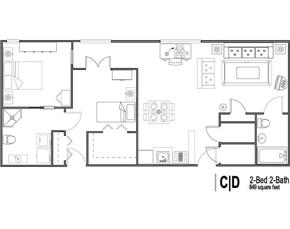 Room Sizes: 410 / 439 / 585 . 849 / 942 sq. ft