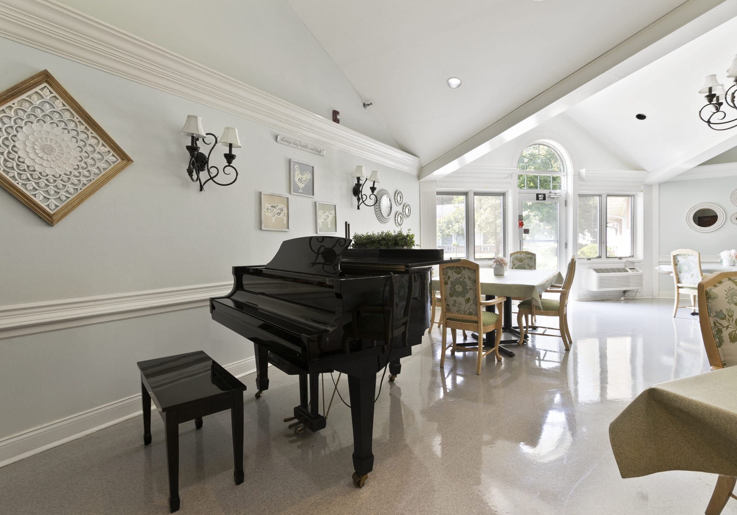 A larger shared setting that may offer more common spaces and organized community services.