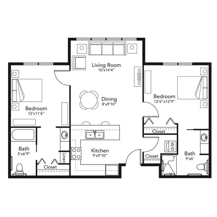 Download PDFLarge 2BR Floor Plan 916 sq ft