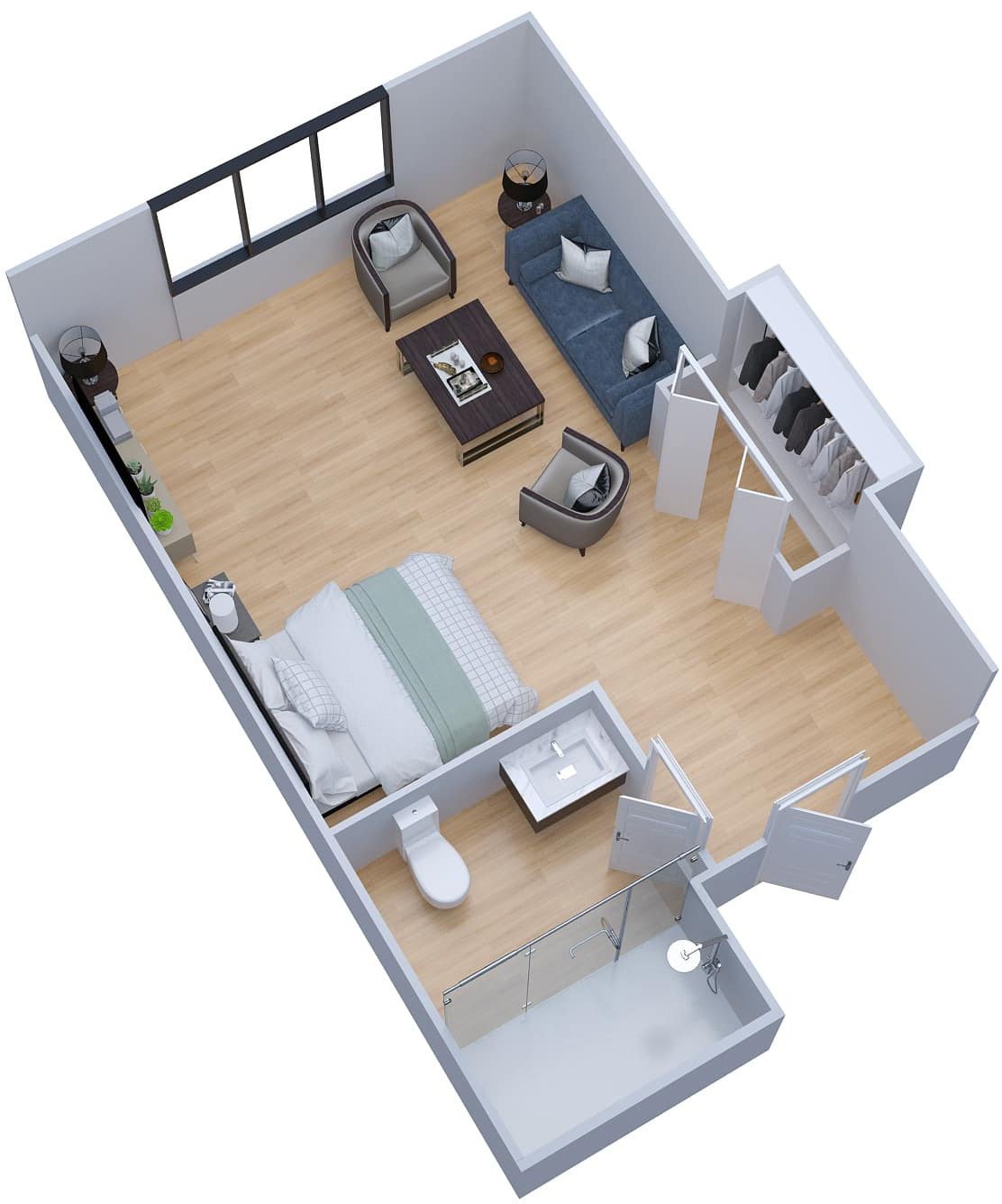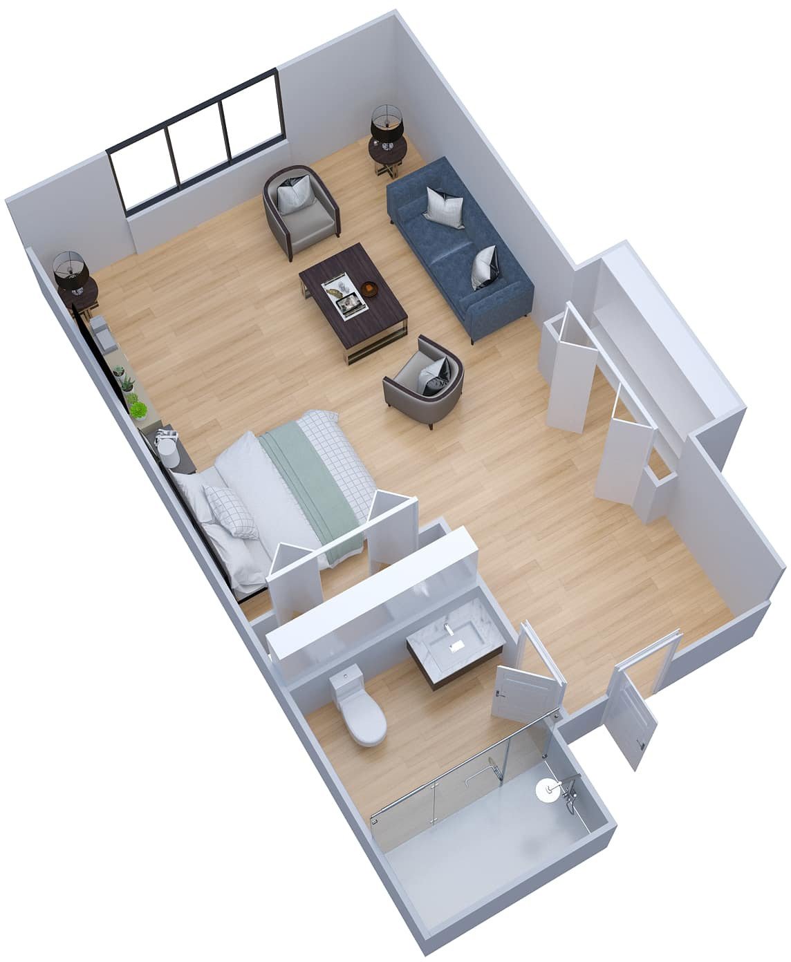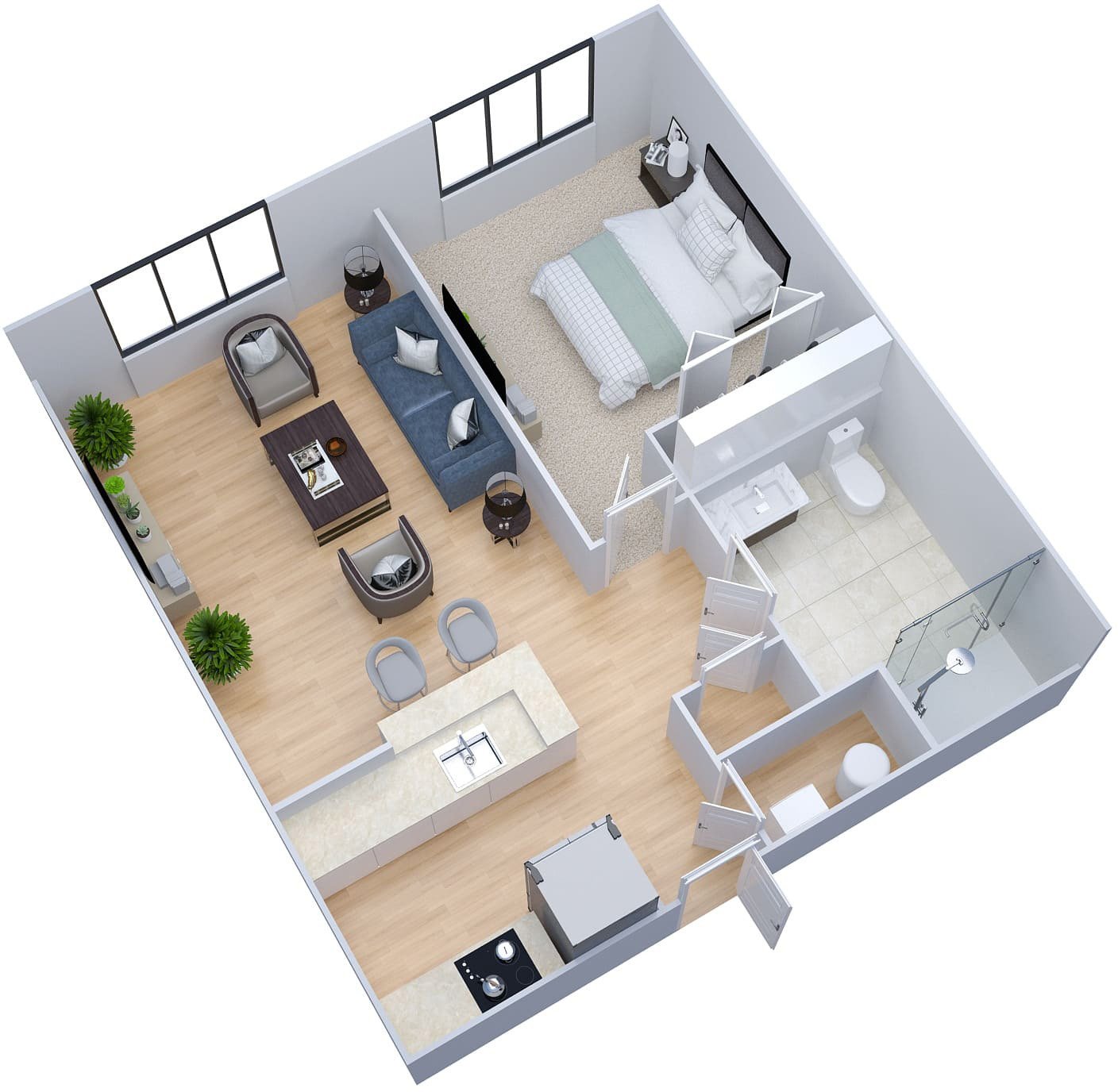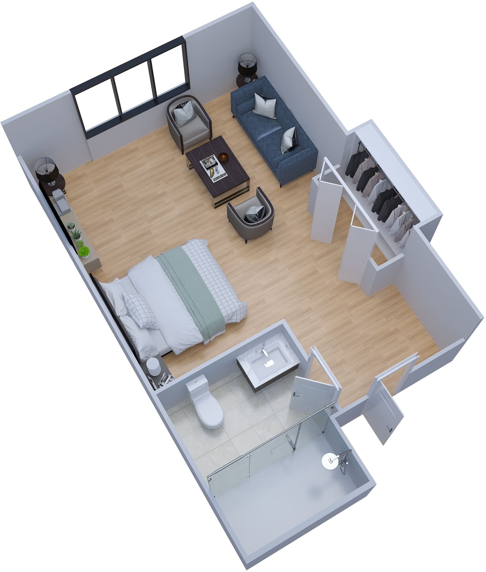 Room Sizes: 285 / 275 - 575 sq. ft.