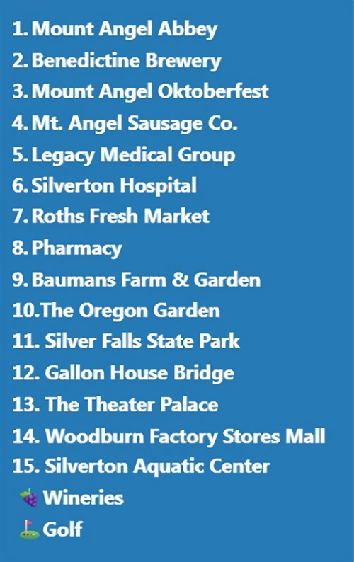 Places of interest near Mt Angel Towers