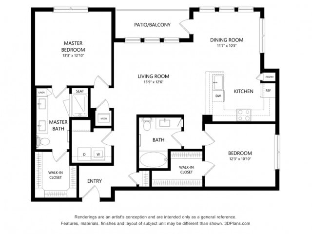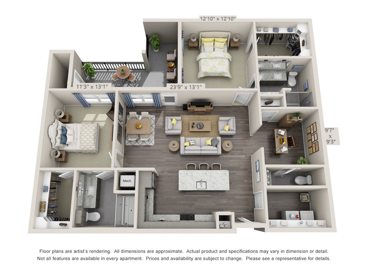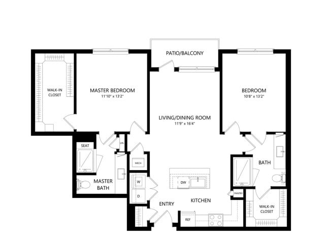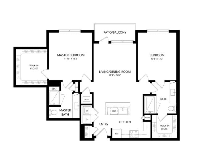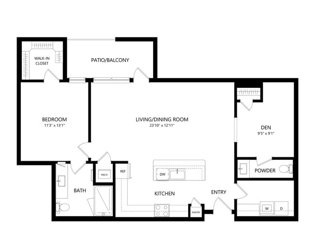 Room Sizes: 598 / 605 sq. ft