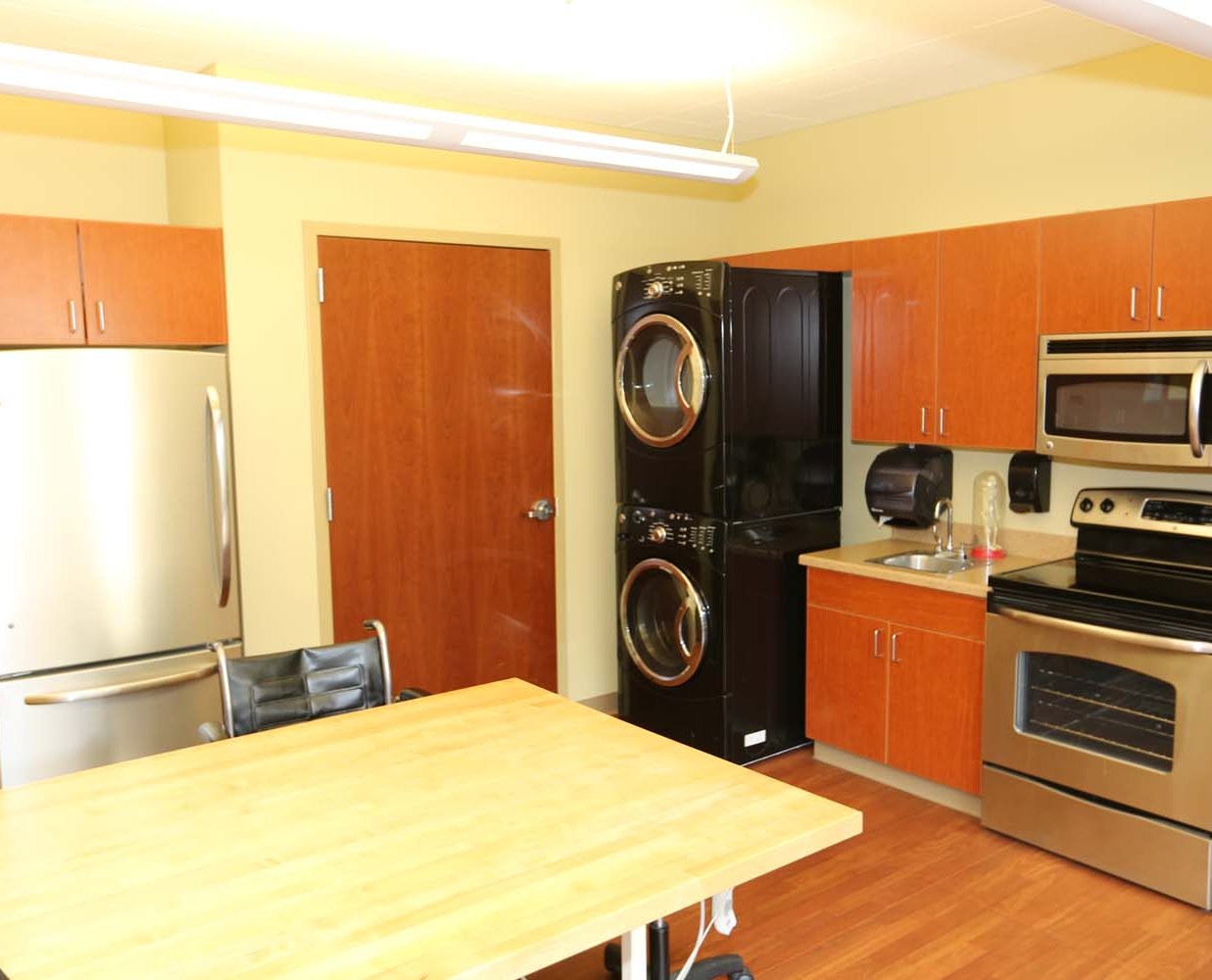 A larger shared setting that may offer more common spaces and organized community services.