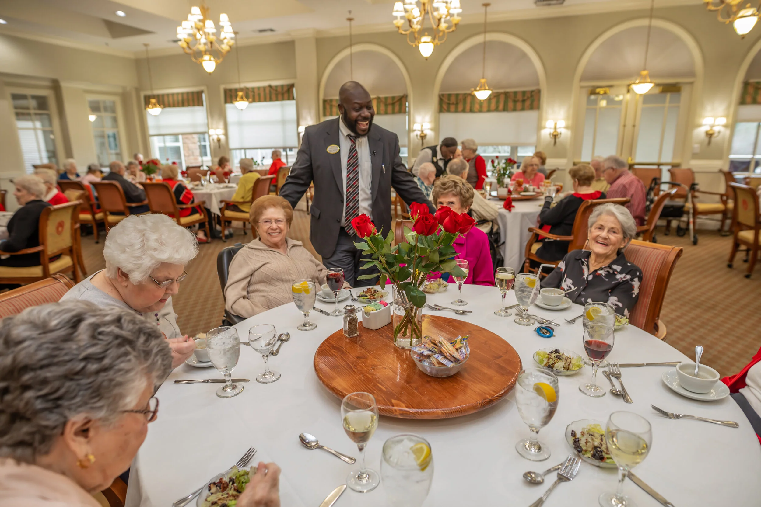 Enrich retirement with a carefully curated calendar of fun activities and engaging events for their leisure and wellness. Healthy meals are important for residents’ well-being, so delightful and nutritious meals are served three times daily to meet their dietary needs and preferences. Here, residents enjoy plenty of resort-style amenities, including a library with a fireplace, a media center, a fitness center, a heated pool, and beautifully designed amenities.