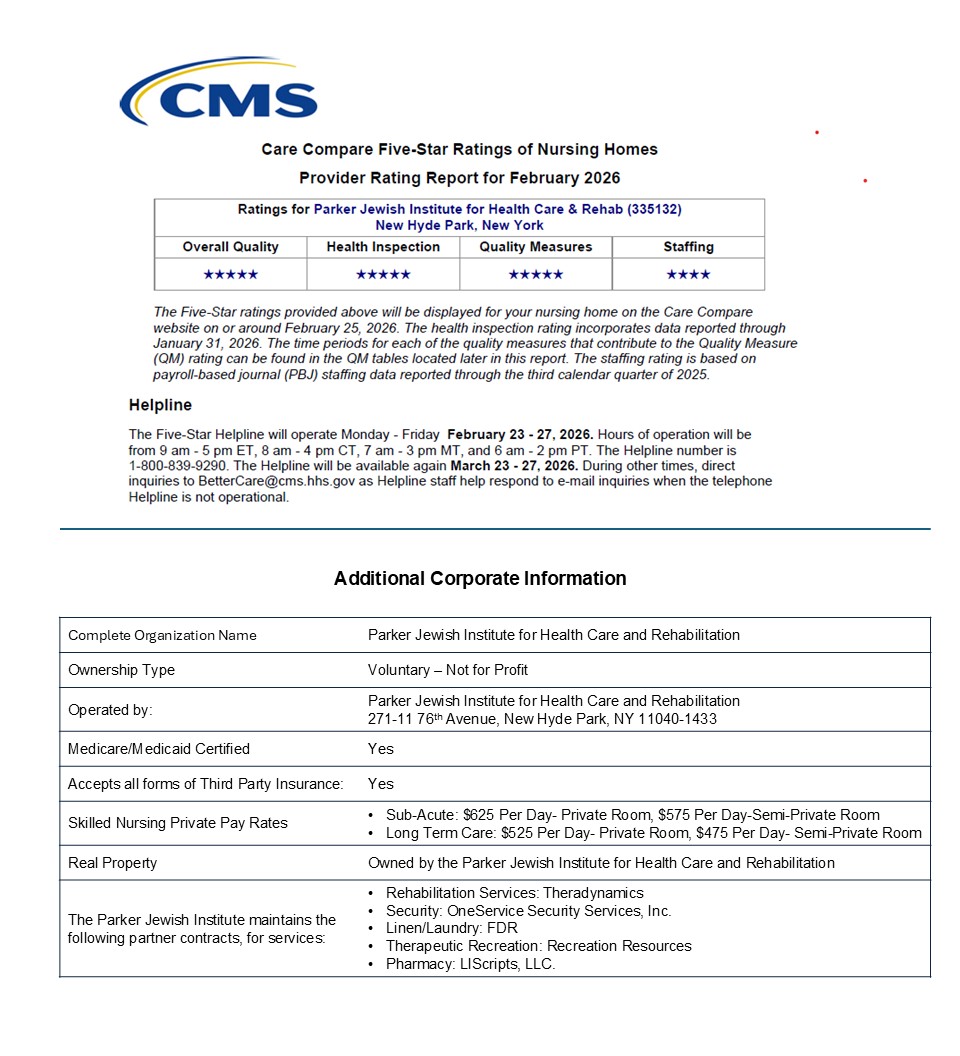 Parker Jewish Institute for Health Care and Rehabilitation is legally operated by Parker Jewish Institute for Health Care and Rehabilitation (Not for Profit).