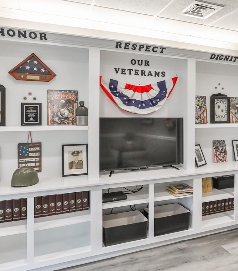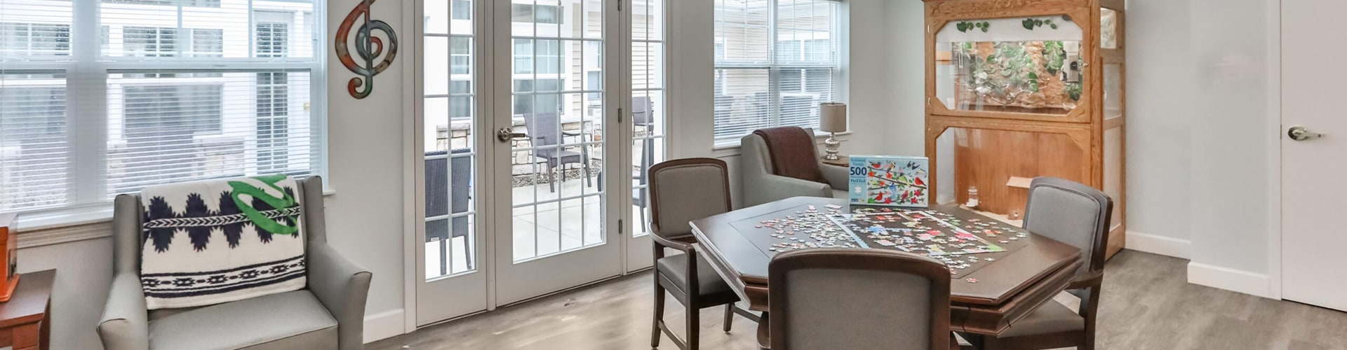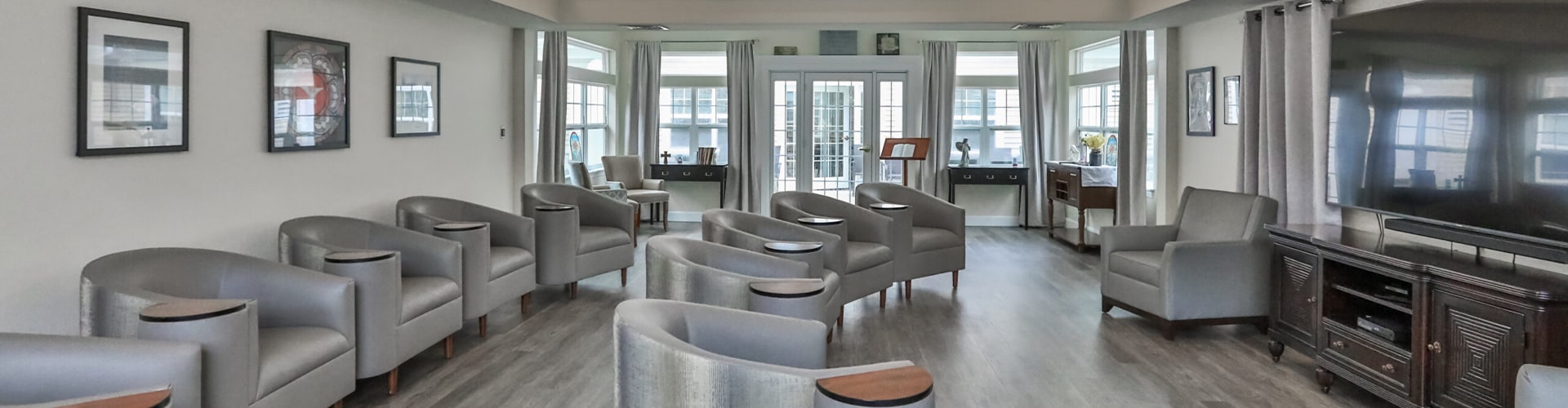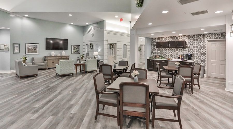 Peregrine aims for a comfortable and secure lifestyle — specialized programs, life enrichment activities, housekeeping, and transportation. Their amenities include wheelchair-accessible showers, social and recreational areas, an elegant dining room, spacious outdoor living, and beautiful interiors that holistically stimulate the well-being of residents.