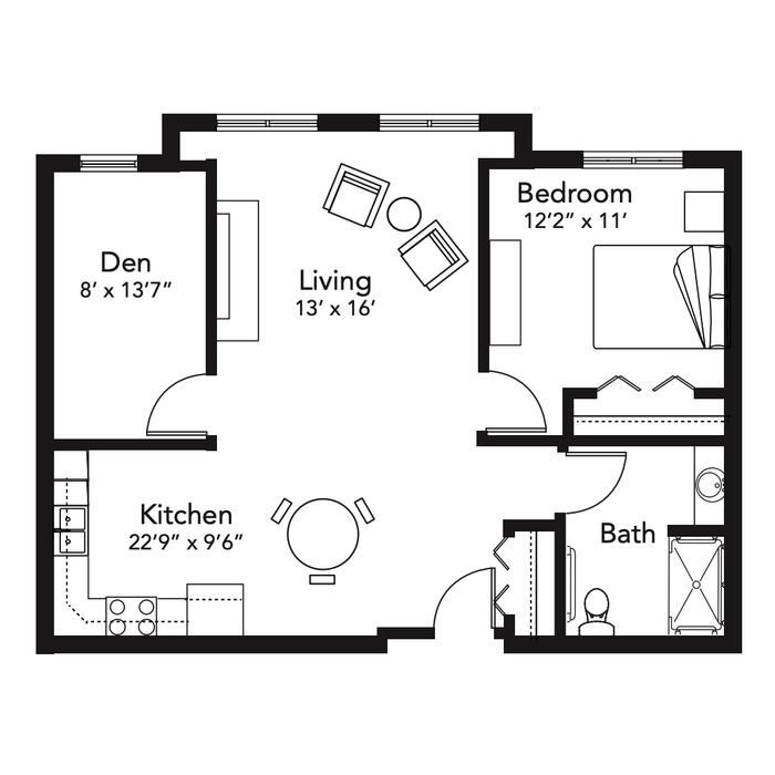 Download PDFOne Bedroom + Den Floor Plan