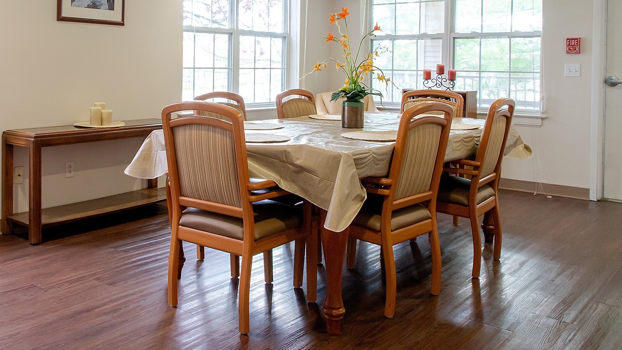 Three home-cooked, delicious meals are served daily in a pleasant dining room. Dining hours are flexible and convenient.