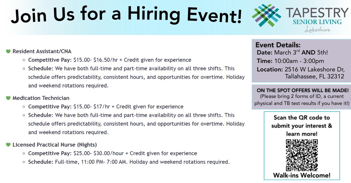 Tapestry Senior Living Lakeshore is legally operated by TALLAHASSEE NHHI, LLC, and administrated by LINDA CAULEY.