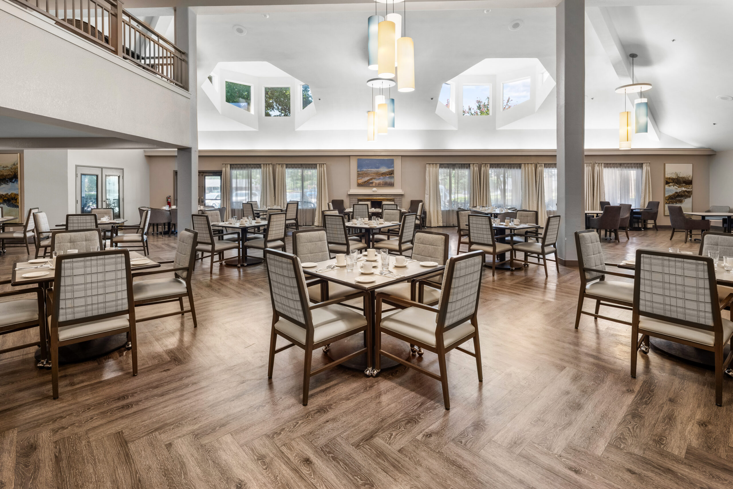 The El Dorado-Sky offers all-inclusive services, including spacious common areas, recreational rooms, housekeeping, and transportation services. Amenities include a chapel, lounge areas, a bistro, a therapy room, a full-service salon, and a spa.