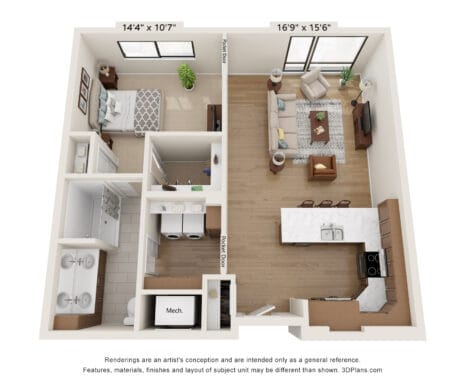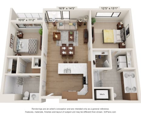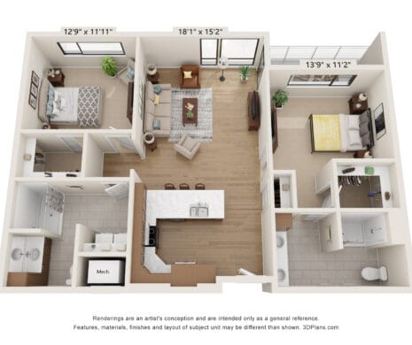 Room Sizes: 827 / 993 - 1332 sq. ft.