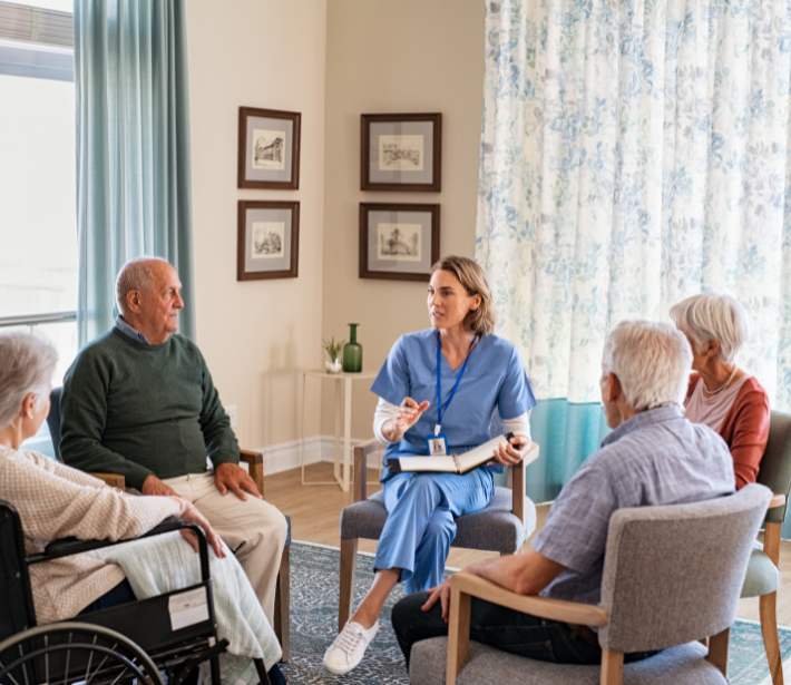 Assisted Living For seniors needing help with daily tasks but not full-time nursing.