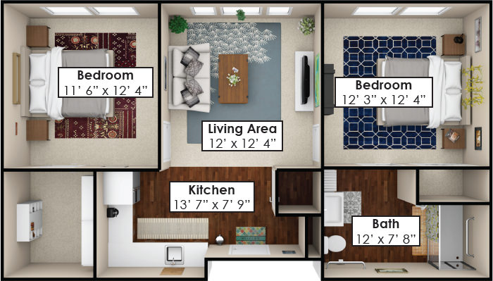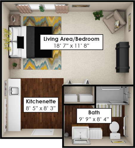 Room Sizes: 369 / 508 / 734 / 1,172 sq. ft