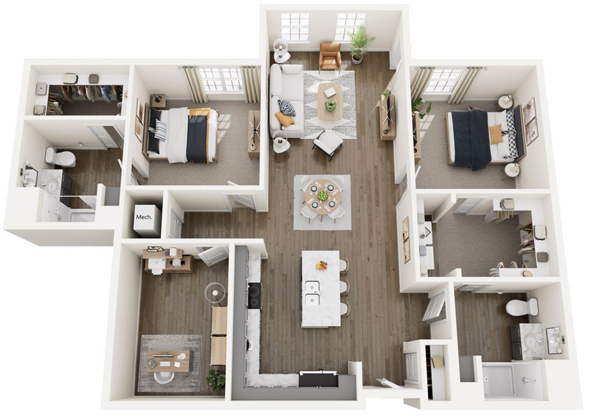 Room Sizes: 449 - 489 / 599 - 672 / 810 / 893 - 1,168 / 1,150 - 1,460 sq. ft