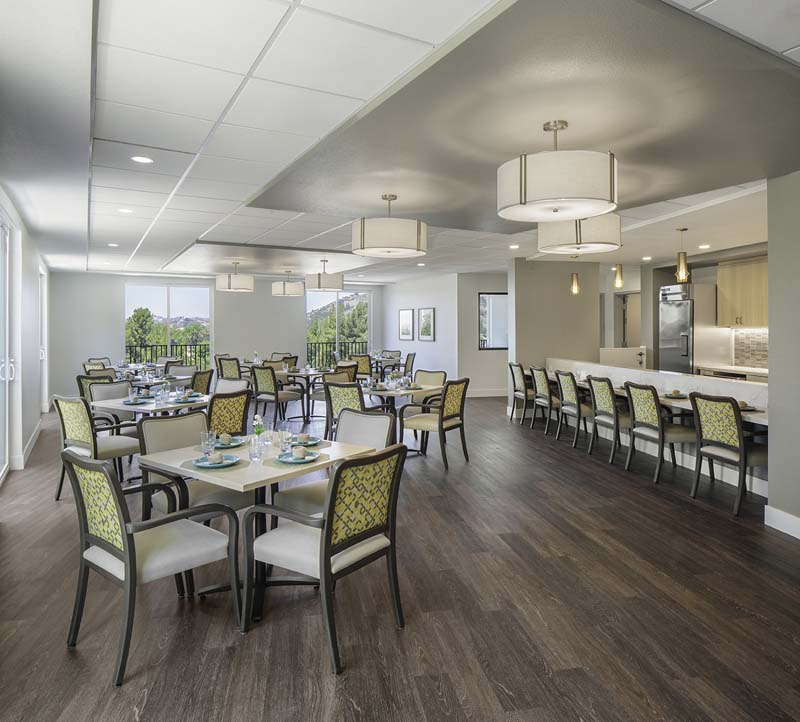 Music programs, light exercises, and various activities ensure residents can live actively and make friends. An outdoor dining area, a movie theater, and spacious courtyards are among the many amenities dedicated to residents’ leisure and wellness. Surrounded by trees, public transportation, and other local amenities, the community guarantees accessibility and convenience. This assisted living community has high standards of care and a clean setting, making it one of the best options for senior living in California.
