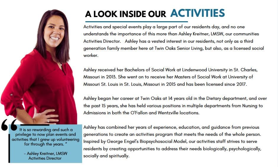Twin Oaks Estate, INC is a senior living community located in Wentzville, Missouri. It offers a range of services including assisted living, memory support, independent living, and villas. The community focuses on providing a family-oriented environment with various activities and events for residents.