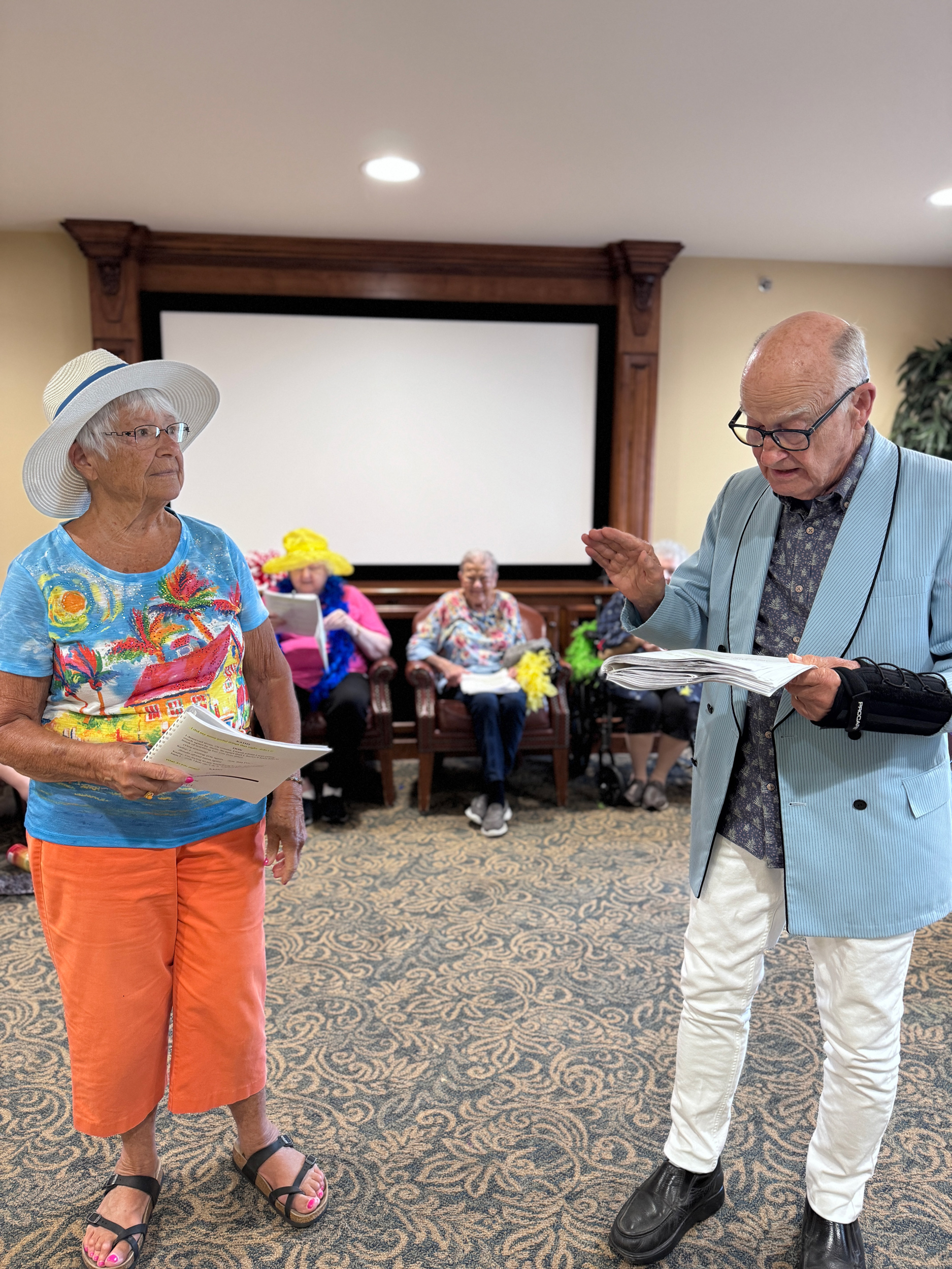 Activities include live concerts, shopping trips, game days, choirs, and resident-led musicals.