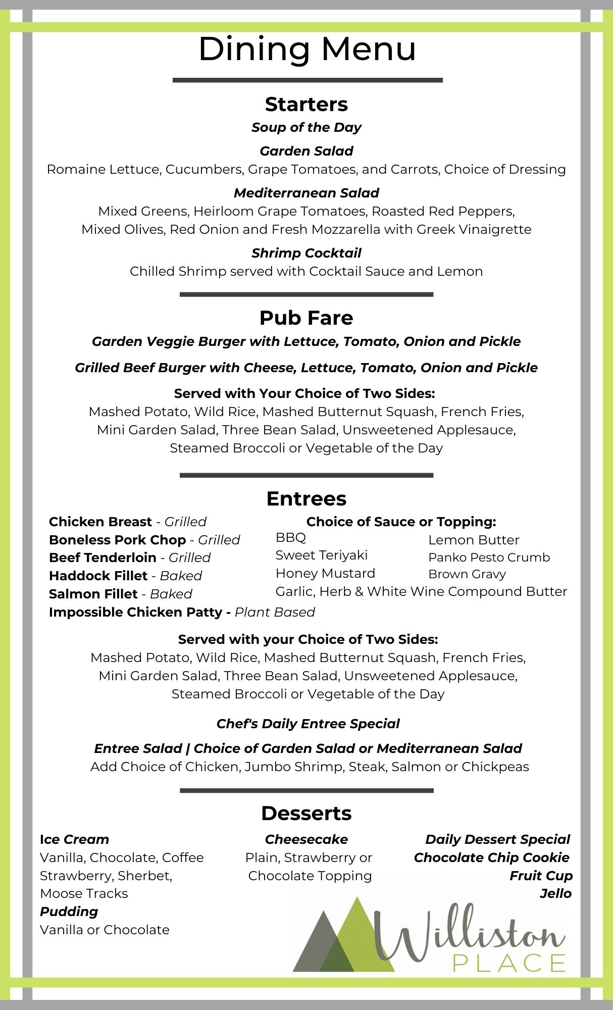 Types of Care at Williston Place