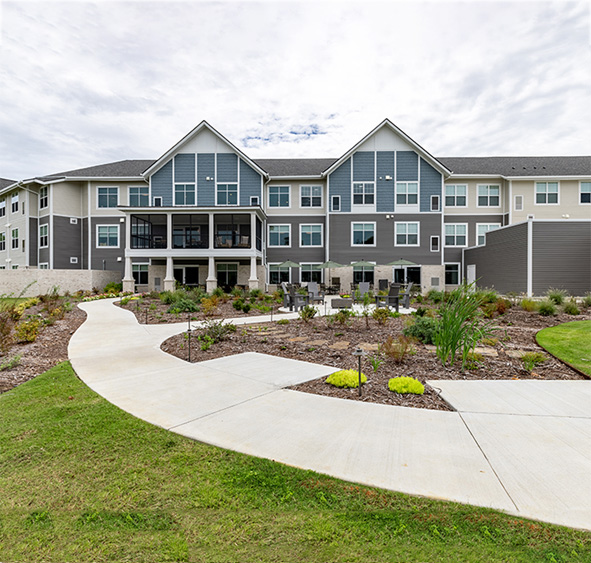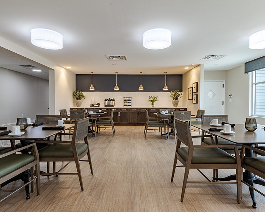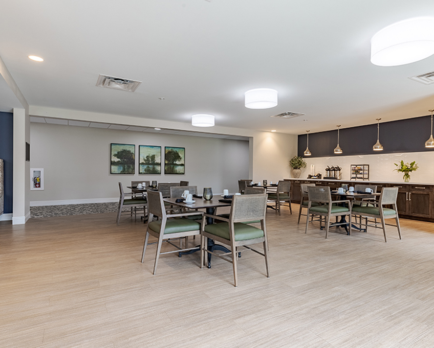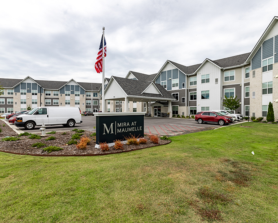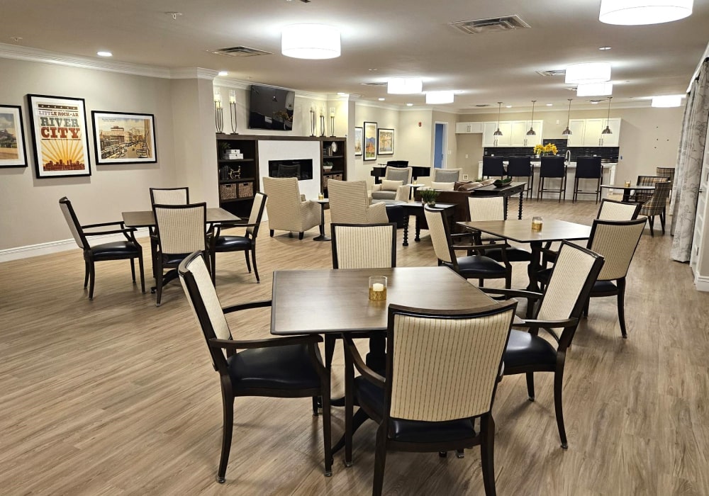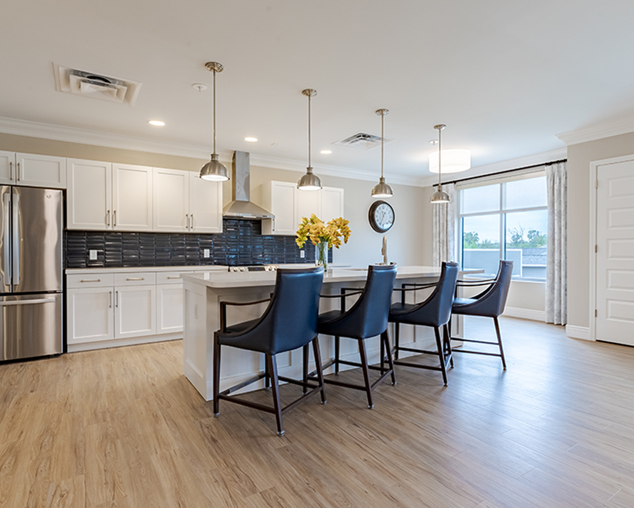 Mira at Maumelle provides personalized independent living, assisted living, and memory care services to older adults and their families who are seeking a vibrant community living experience. Mira at Maumelle’s main building, home to independent and assisted living residents, has two distinctive one-bedroom floor plans available— residents can choose a kitchen layout that features either an L-shape counter or an island.